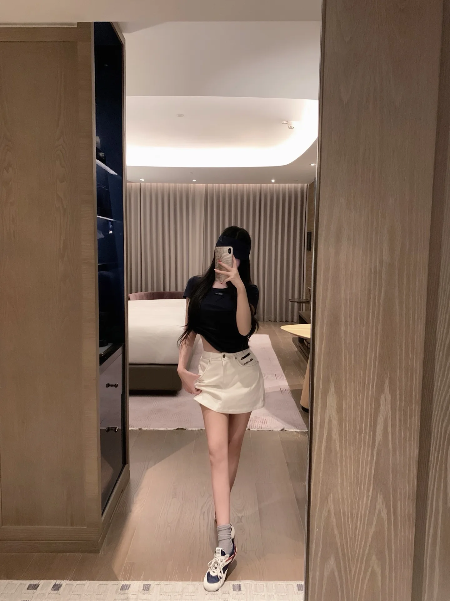 PRAD* Maßgefertigter, figurbetonter Dreieck-Jeansrock mit Kontrastmuster