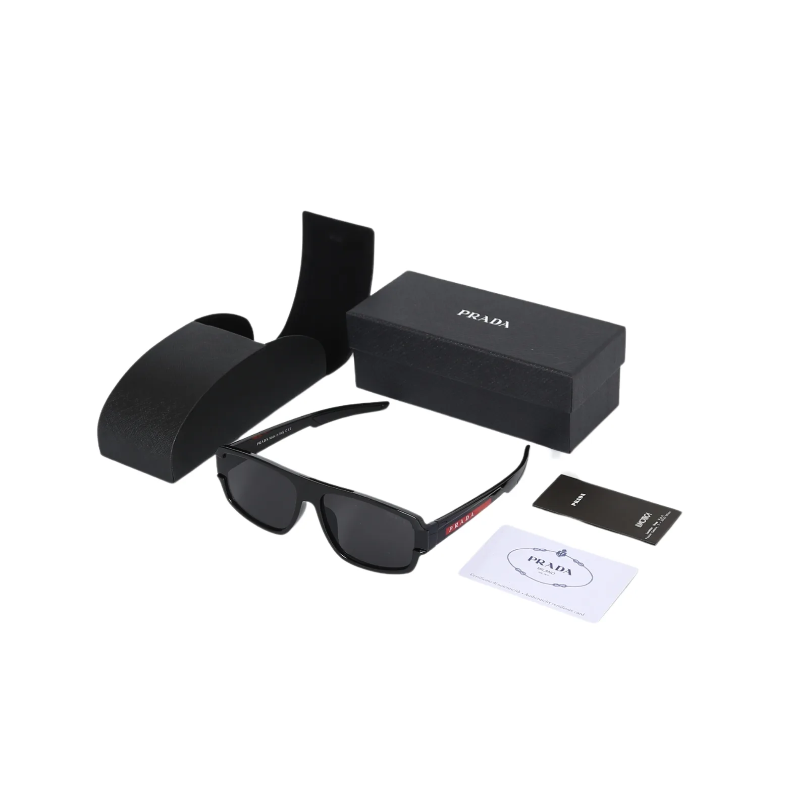 Prada LIFESTYLE Kollektion Rechteckige Road Trip Edition Sonnenbrille SPSY F Herren Schwarz! Bei sengender Sommerhitze ist eine Sonnenbrille ein Must-have für alle, die wie Stars aussehen möchten. PRADA-Markenbotschafterin Cai Xukun sieht in dieser Sonnenbrille unglaublich gut aus! Diese Prada-Sonnenbrille vereint perfekt östliche und westliche Einflüsse! Sie ist beidseitig mit roten Verzierungen im Fenstermuster verziert. Stilvoll, elegant und romantisch! Diese Produkte entsprechen den europäischen Exportstandards und sind somit absolut sicher und umweltfreundlich. Nur begrenzt verfügbar – kaufen Sie sie also für Kenner!