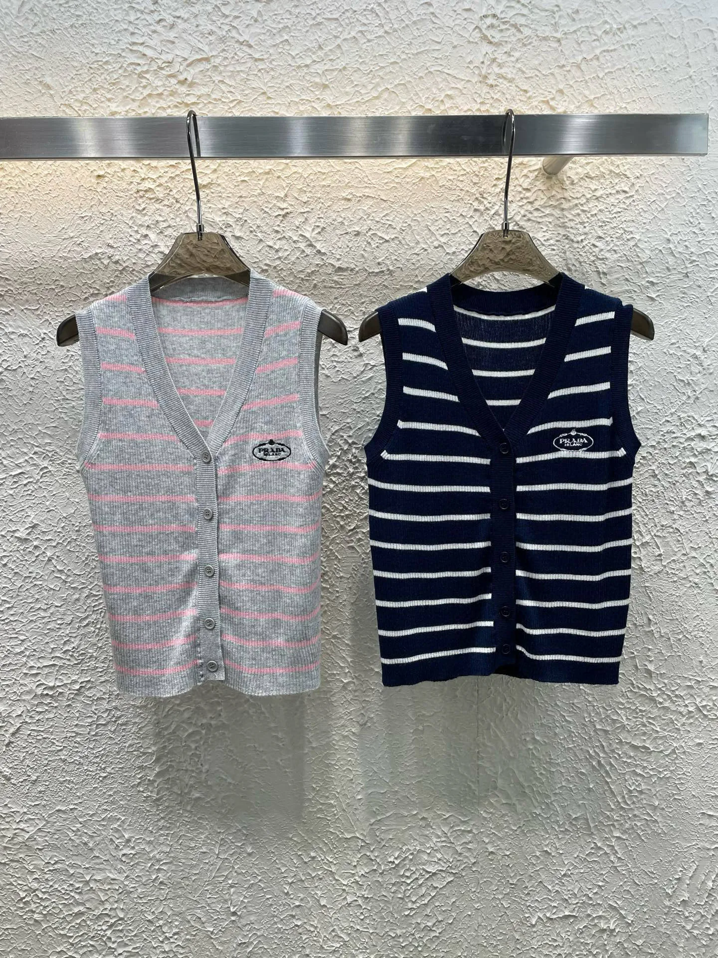 Bestseller Prada Weste Grau Strick Logo Kollektion