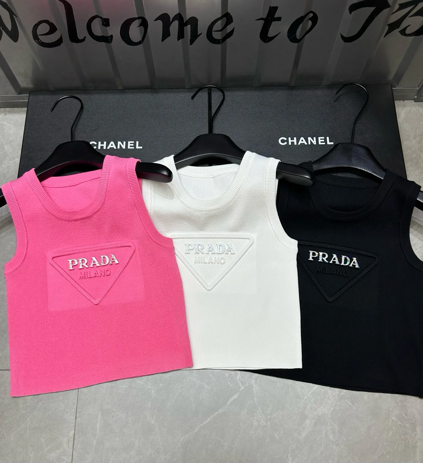 Prada Strickweste mit farbenfrohem 3D-Schriftzug und Dreiecksmotiv