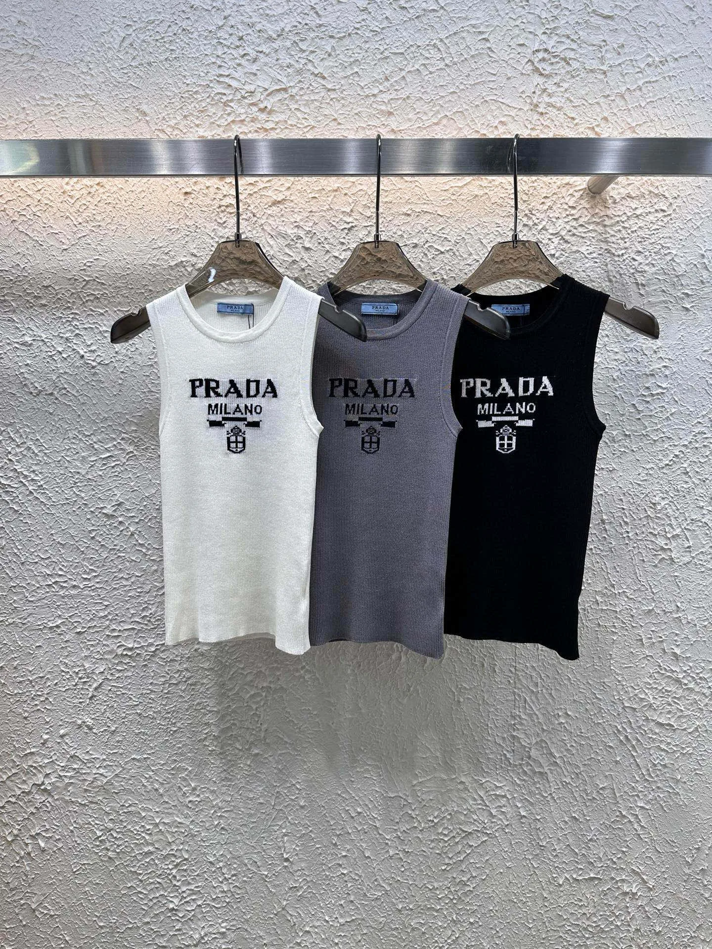 Bestseller Prada Weste Weiß Strick Logo Kollektion