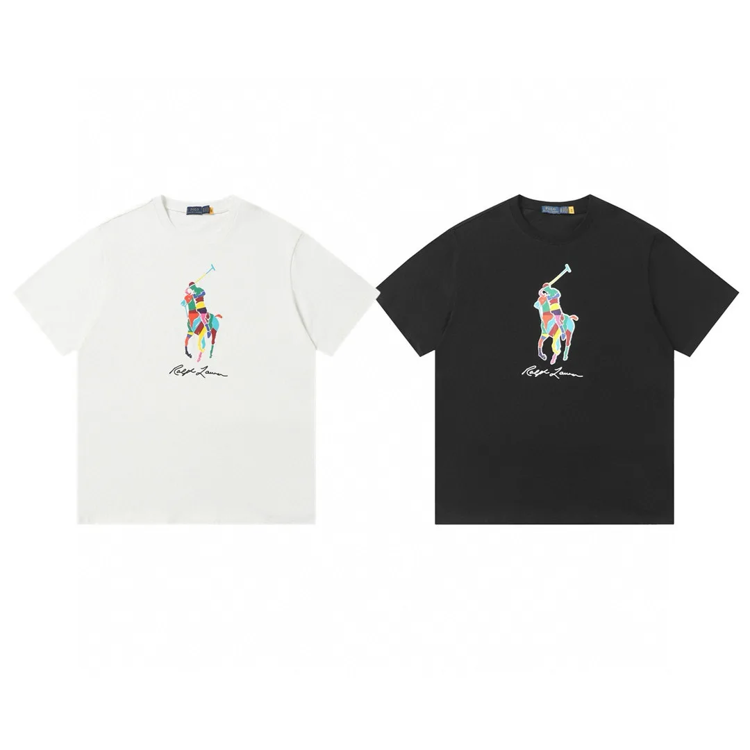 Ralph Lauren Polo SS Tangram Lässiges Rundhals-T-Shirt für Paare mit buntem Pferde-Print – Originalqualität