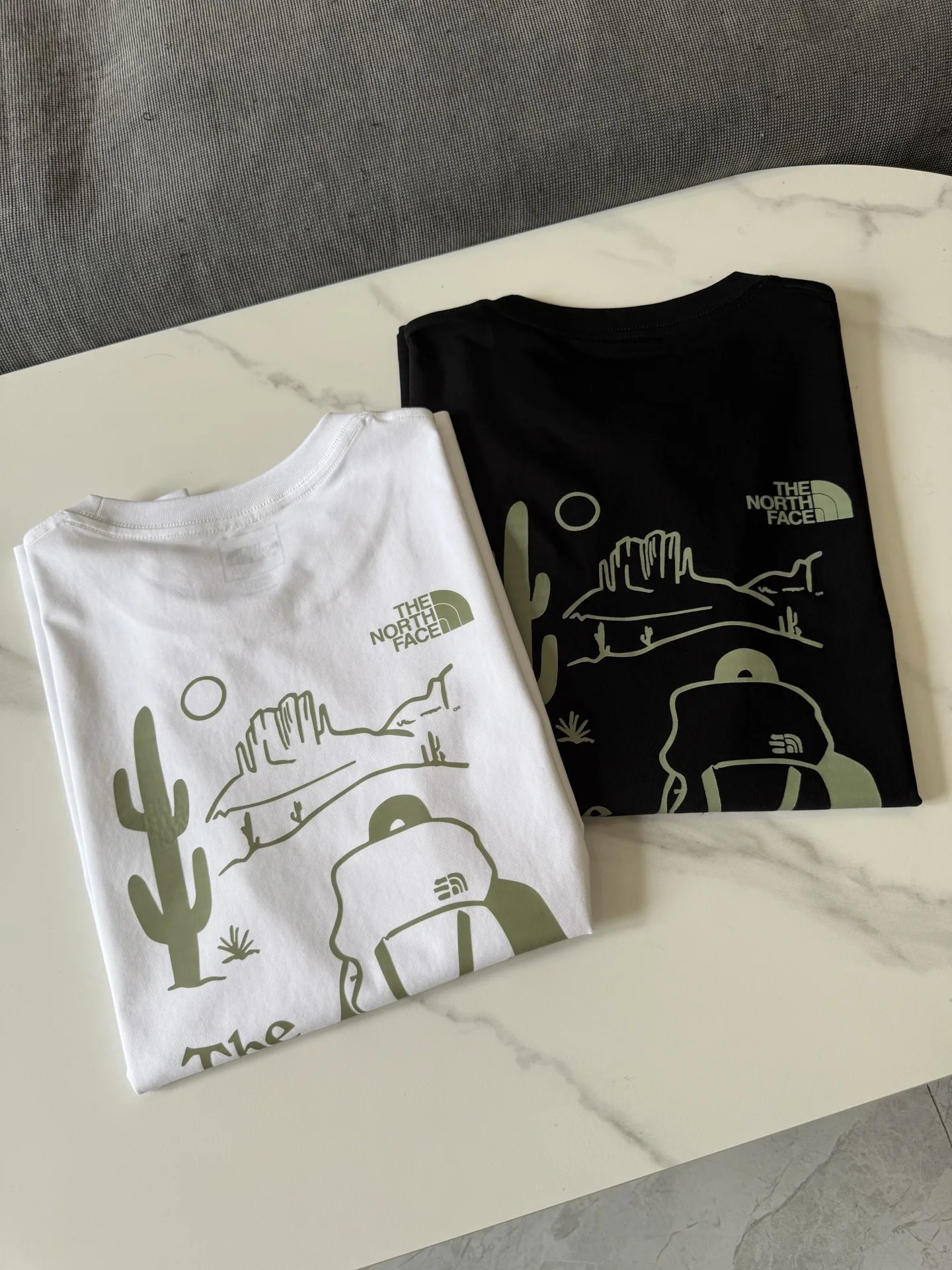 THE NORTH FACE Lässiges, sportliches Kurzarm-T-Shirt mit Cartoon-Graffiti-Print auf der Rückseite, amerikanischer Retro-Stil, bequemer und atmungsaktiver Rundhalsausschnitt. Unisex.