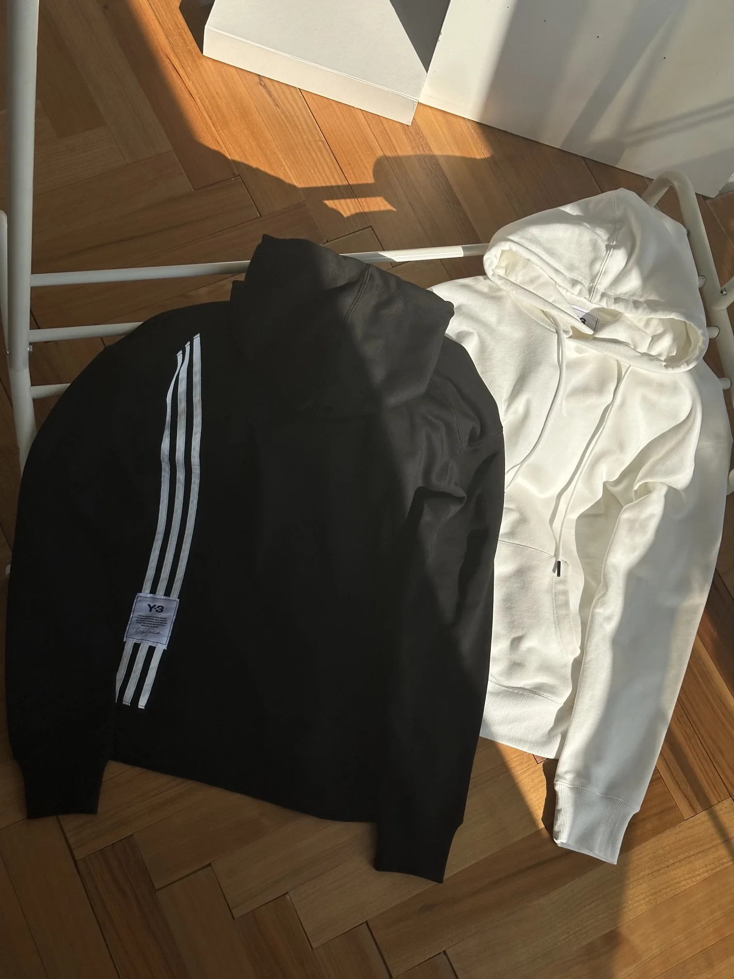 Y- Yohji Yamamoto Designer-Kollaboration: Frottee-Hoodie mit drei Streifen