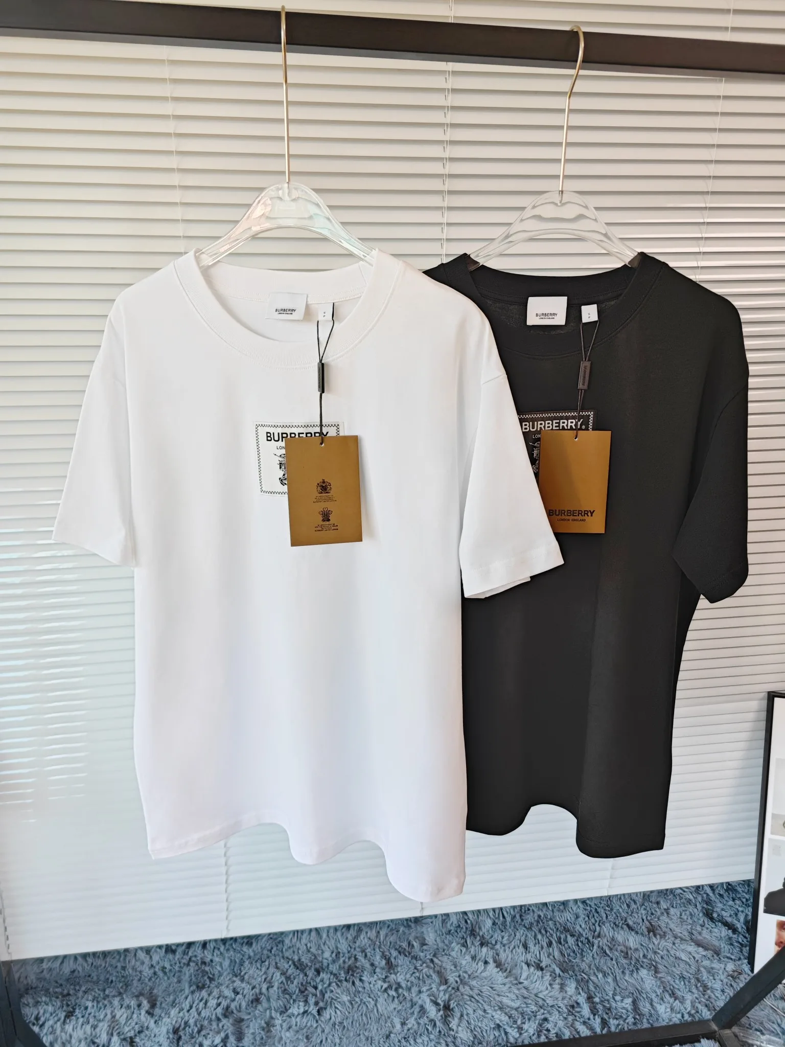 Burberry-Kollektion mit kurzen Ärmeln und schwarzem Baumwolldruck in Premiumqualität