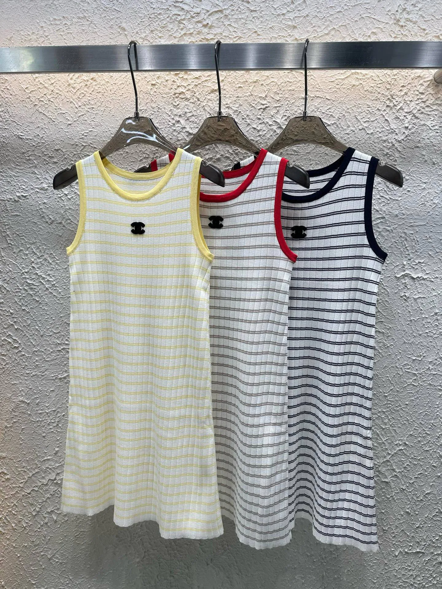Chanel 3D-Strickkleid mit Doppel-C-Streifen