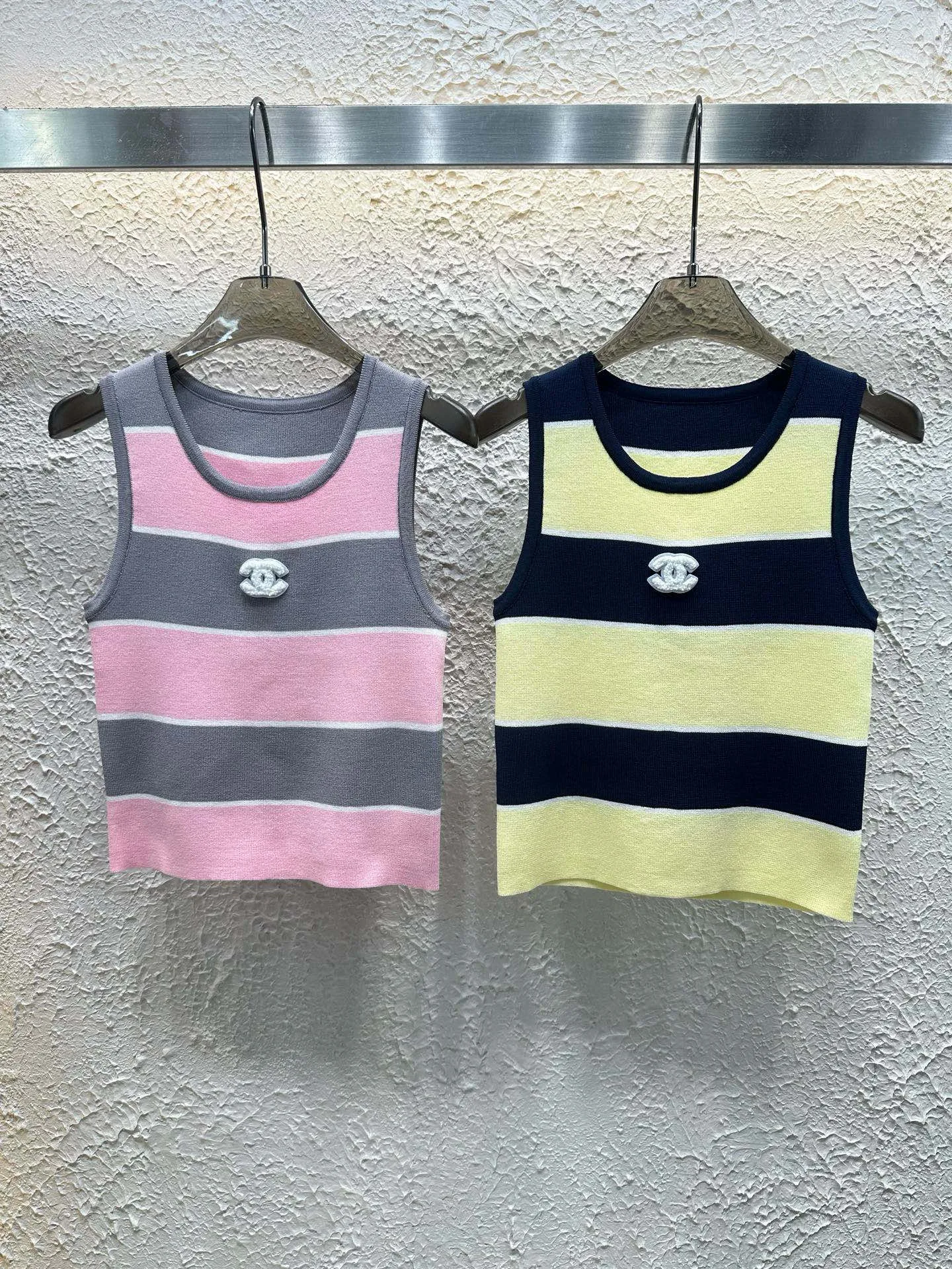 Chanel Weste in Premiumqualität, rosa Strick, gestreift