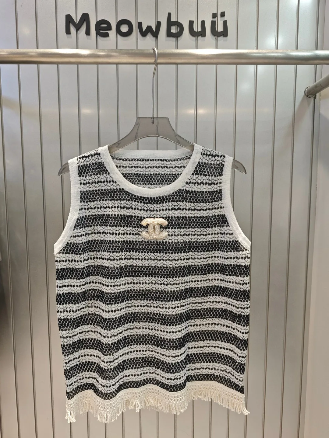 Chanel Weste in Premiumqualität, Strick, gestreift, Luxus
