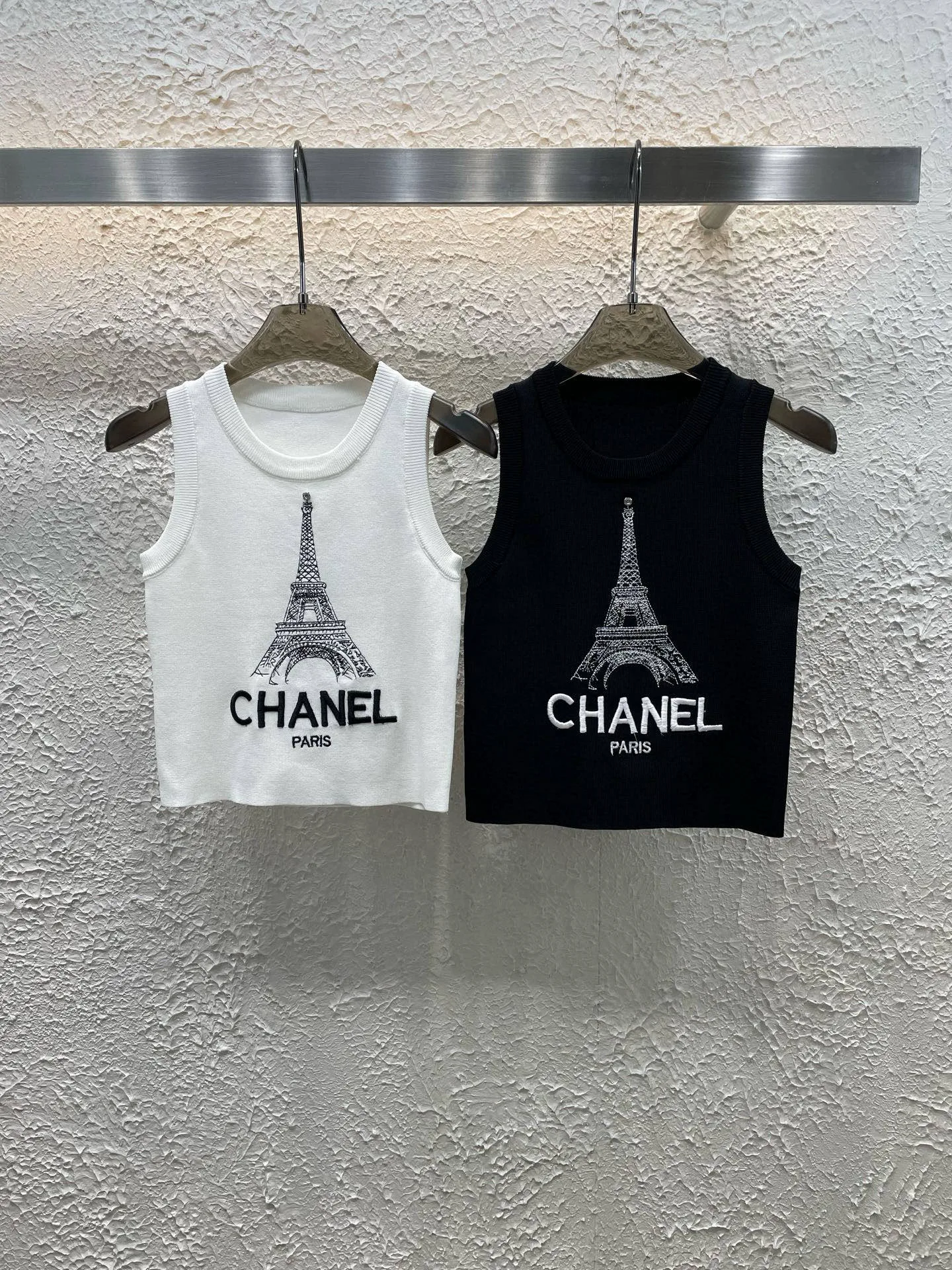 Chanel Rundhals-Weste mit Eiffelturm-Stickerei