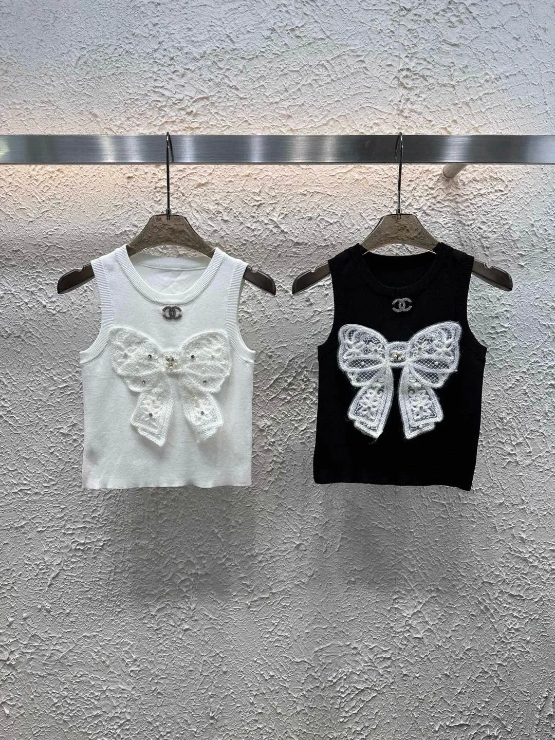 Chanel – Handgenähte Weste mit Doppel-C-Nieten und Perlenschleife im Rundhalsausschnitt