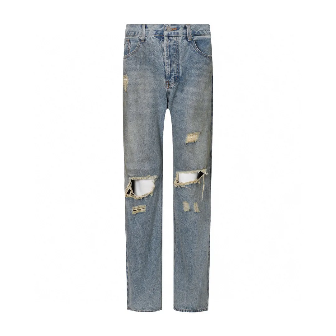 Dirty Jeans im Acne-Stil, schlammgefärbte, zerrissene Bluejeans, locker sitzende Hosen mit weitem Bein, Unisex-Oberteile.