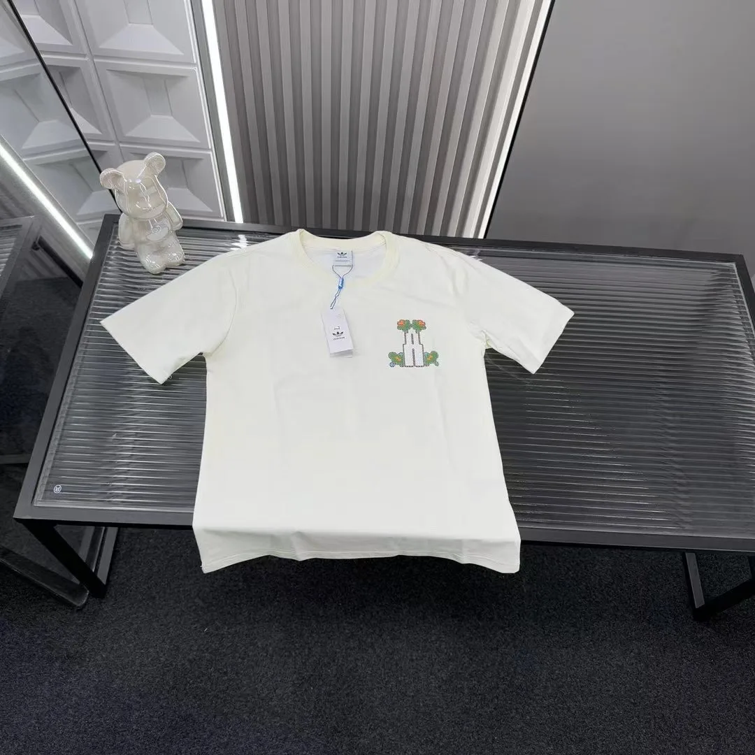 Empfohlene neue Kurzarmshirts: das adidas Trefoil Digital Floral Kurzarmshirt. Alle drei Logos sind identisch mit denen auf der offiziellen Website. Zoomen Sie hinein, um Details zu sehen. Foto mit der Originalkamera aufgenommen.