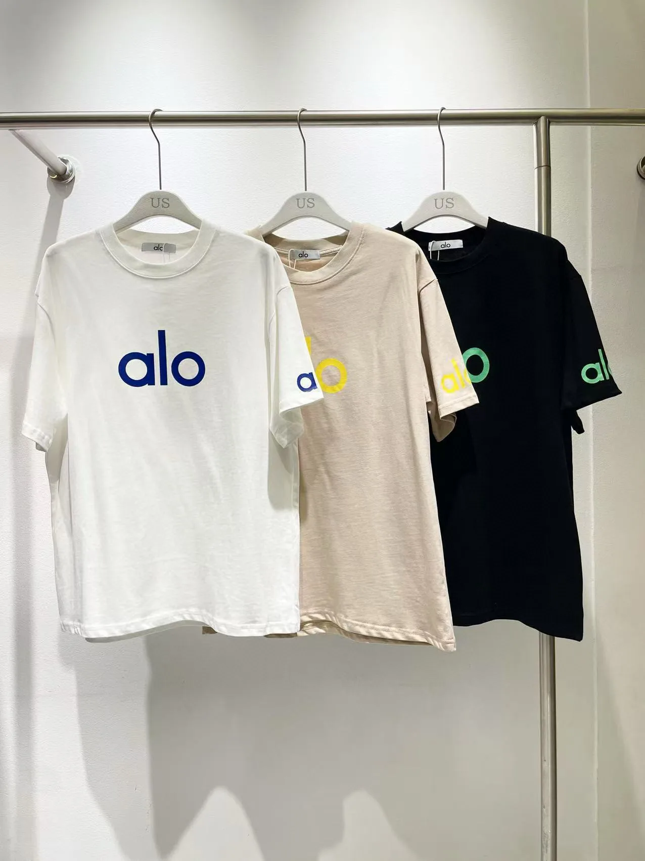 Hochwertige Alo-Kollektion mit kurzen Ärmeln und schwarzem Druck