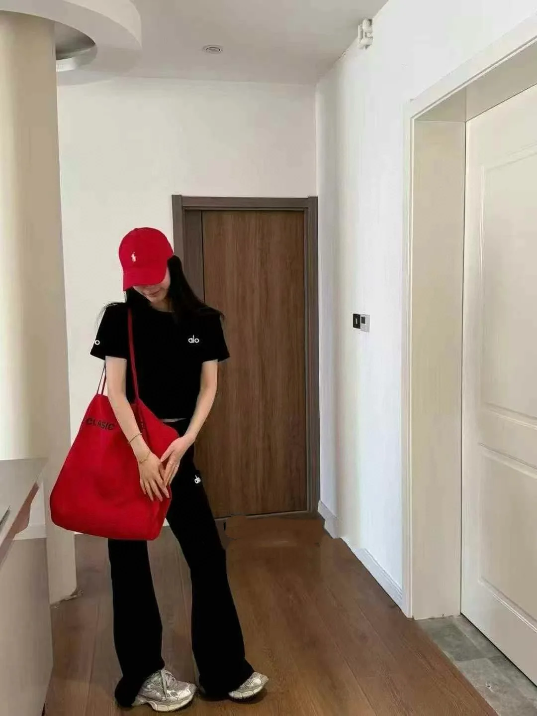 Hochwertige Alo-Kollektion mit kurzen Ärmeln und schwarzer Stickerei