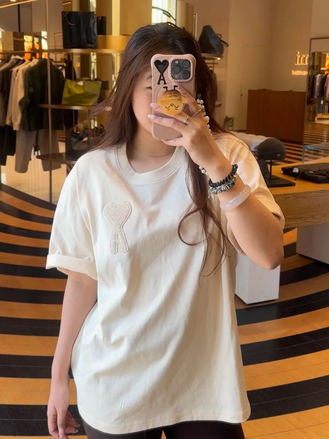 AMI [Kurzarmshirt mit 3D-Herzstickerei]