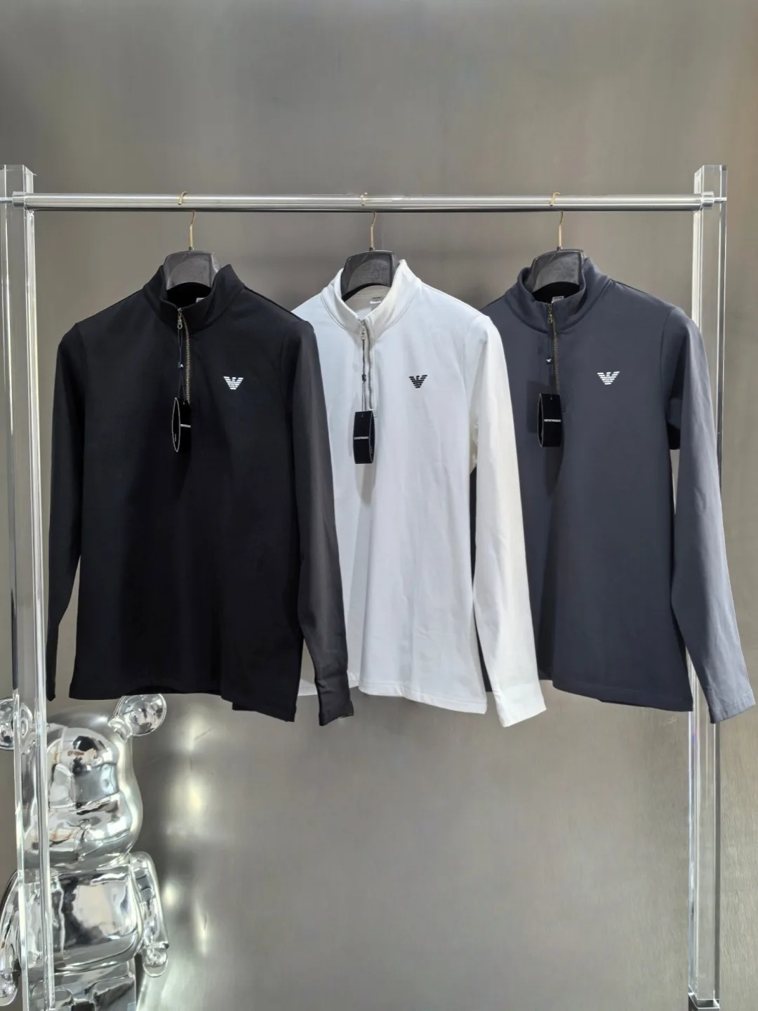 Armanis neues, dünnes, hochwertiges, langärmliges Sport-Sweatshirt aus hochelastischem Nylon-Spandex mit halbem Reißverschluss.