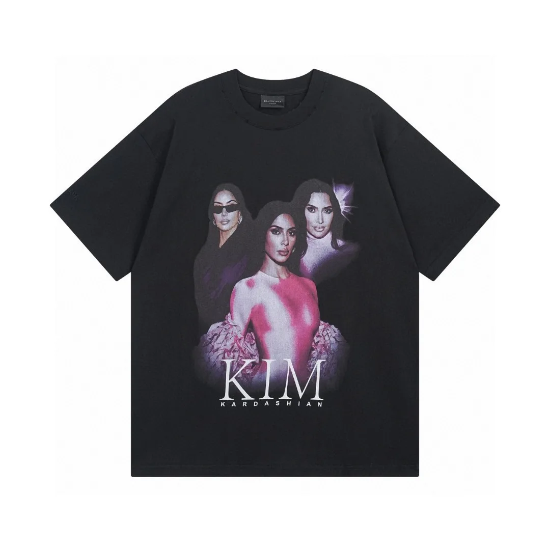 BALENCIAGA/Balenciaga SS Freshly-Roasted Kim Kardashian Kurzarm-T-Shirt im Distressed-Look mit Direkt-Tintenstrahldruck