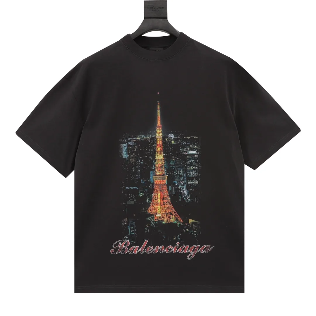 (Spitzenmodell, hochwertigste Ausführung) Die Größen fallen groß aus. Balenciaga Classic Tower T-Shirt mit Rundhalsausschnitt und Print.