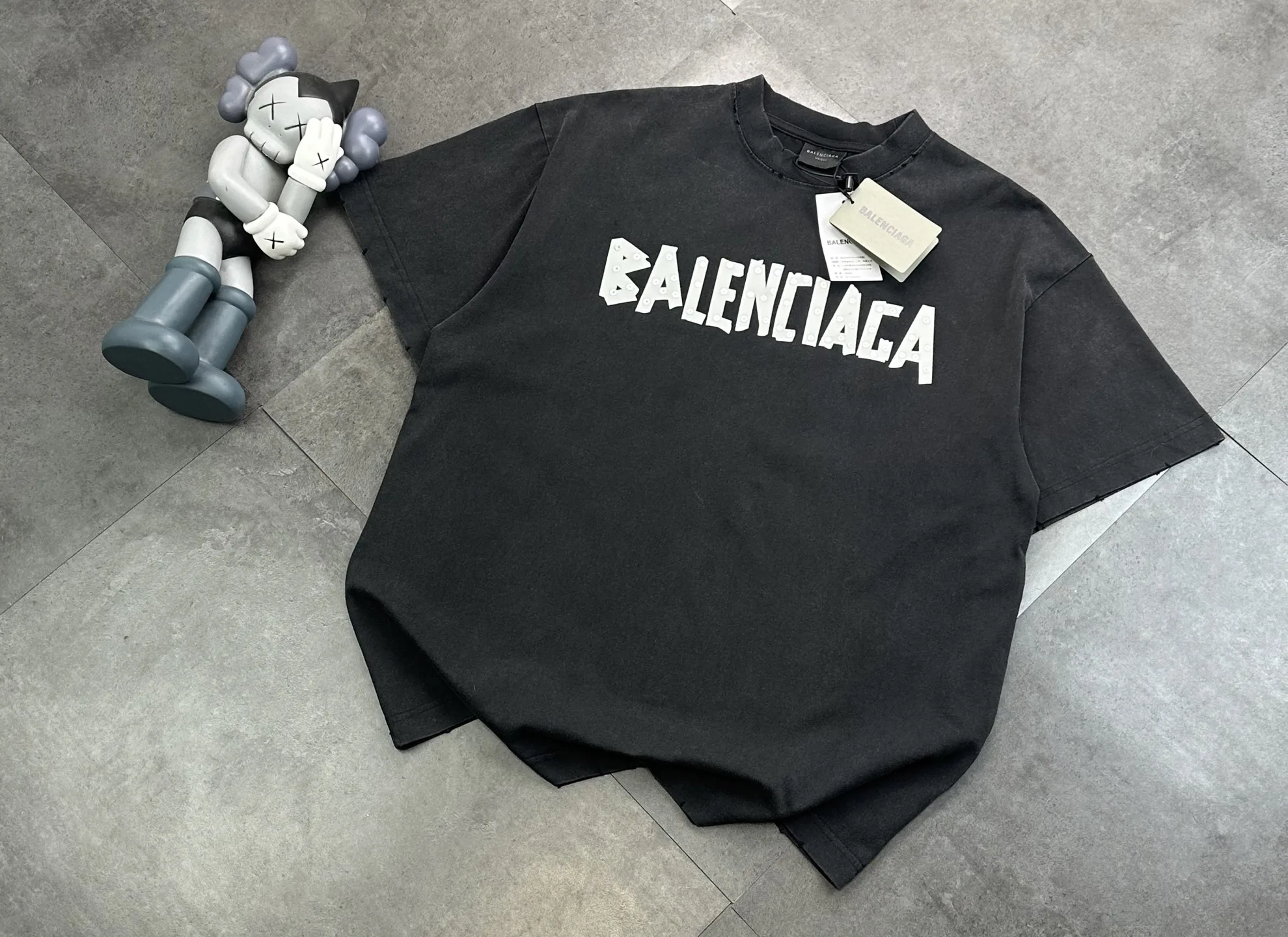 Balenciagas neuestes Kurzarm-T-Shirt feiert zum Frühlingsfest Premiere! Hergestellt aus Pariser G-Stoff, stark gewaschen für ein Used-Look-Finish mit ausgefransten Nähten und sorgfältiger Verarbeitung.