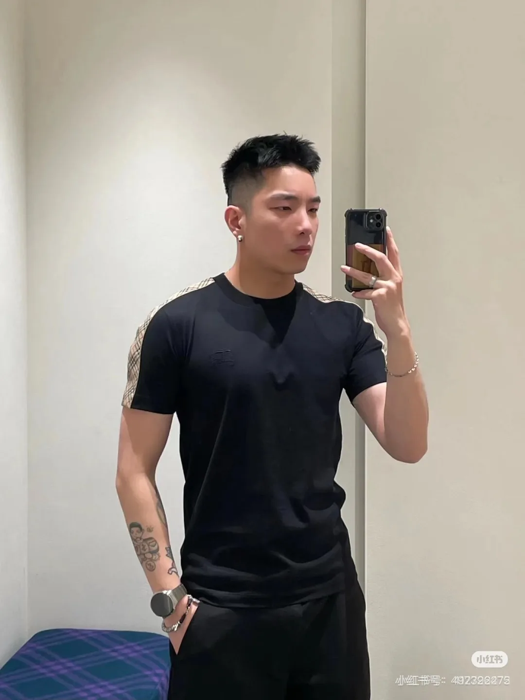 Hochwertige Burberry Kurzarm-Kollektion aus schwarzer Baumwolle mit Stickerei