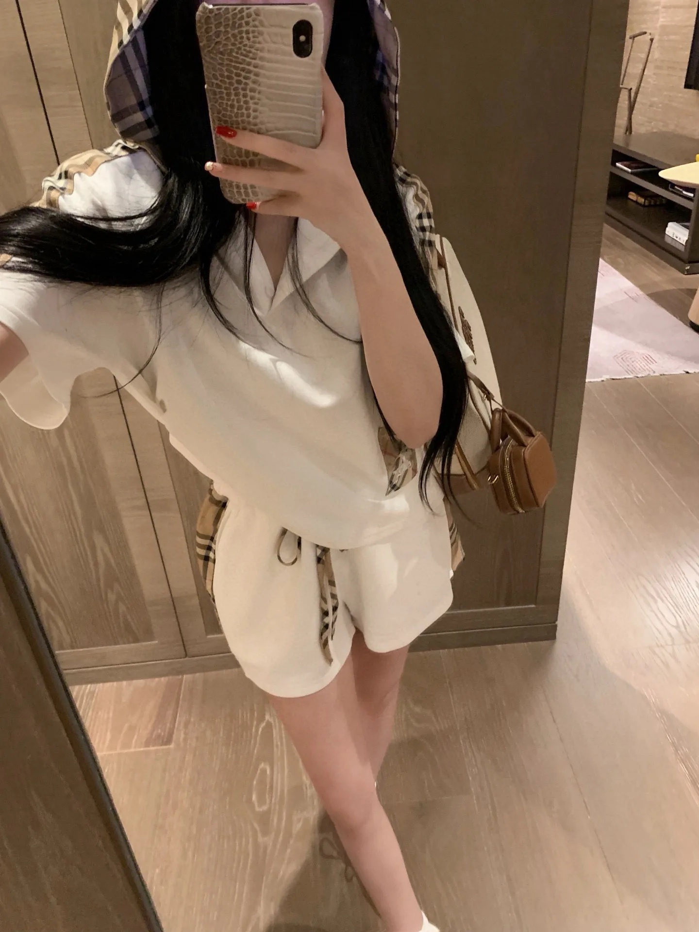 Hochwertige Burberry Kurzarm-Kollektion mit weißem Karomuster