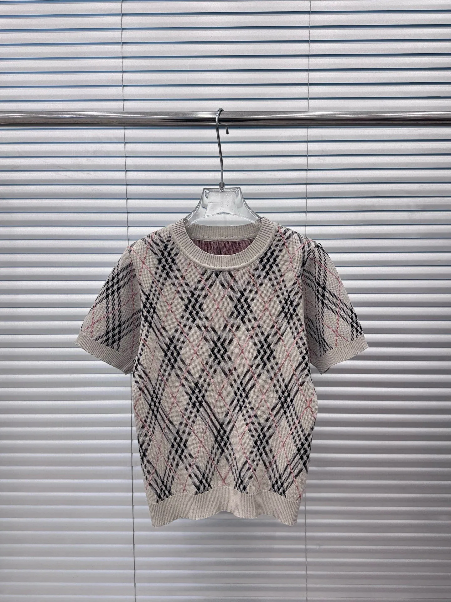 Burberry BBR Classic Check Rundhals-Strickpullover mit kurzen Ärmeln