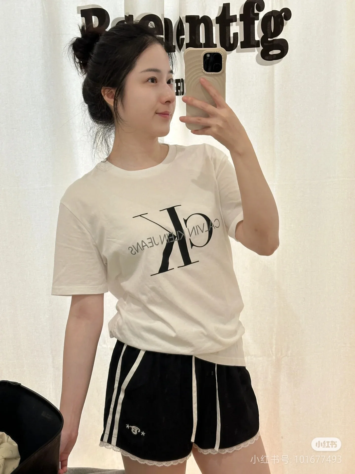 Calvin Klein CK lässiges Kurzarm-T-Shirt mit Rundhalsausschnitt für Paare. Dieses bedruckte und bestickte T-Shirt ist zeit- und arbeitsintensiv und erhöht die Kosten.