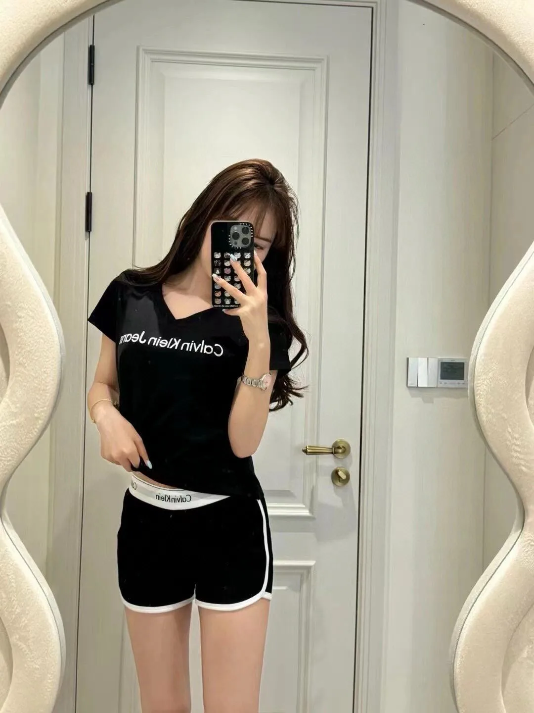 Hochwertige Calvin Klein Kurzarm-Kollektion mit schwarzem Print