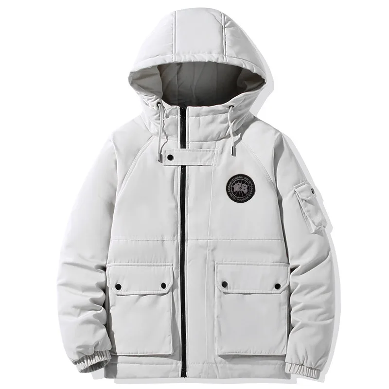 Reißverschlüsse und weiteres Zubehör sind maßgefertigte YKK-Reißverschlüsse, die 100-mal teurer sind als herkömmliche Reißverschlüsse. Jedes Reißverschlussband trägt das Canada Goose-Logo, und die Details, einschließlich der Knopfleiste und der Nähte, sind unglaublich detailliert.