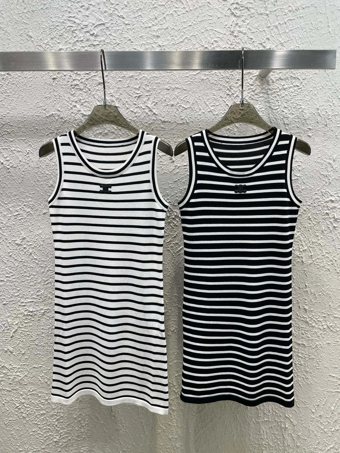 Celine Arc de Triomphe – Gestreiftes Strick-Westenkleid mit Lederlabel