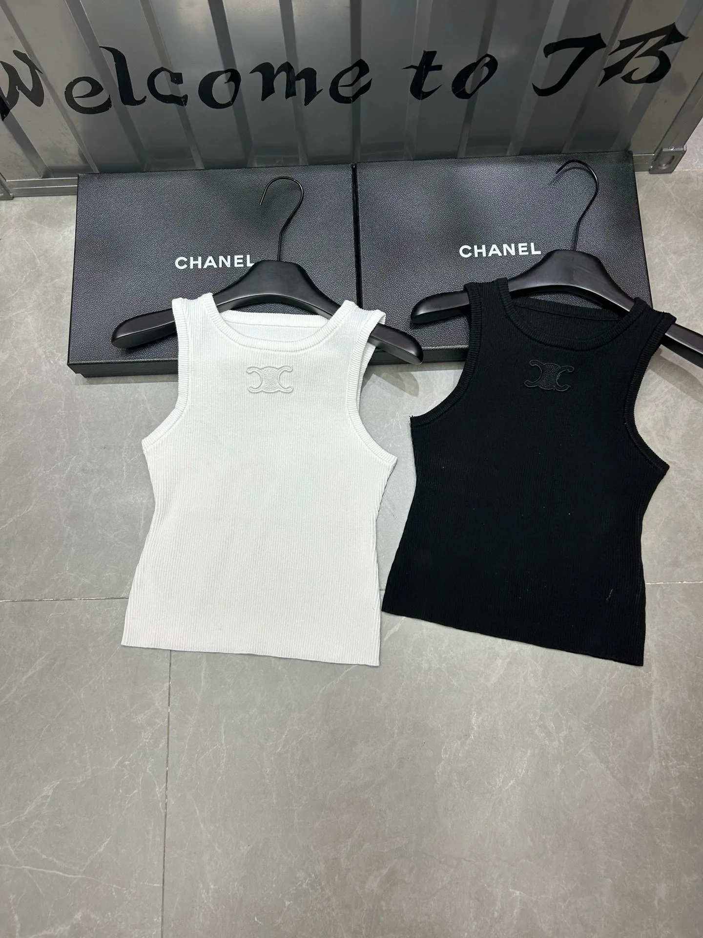 Hochwertige Celine-Weste im weißen Strick-Stickstil
