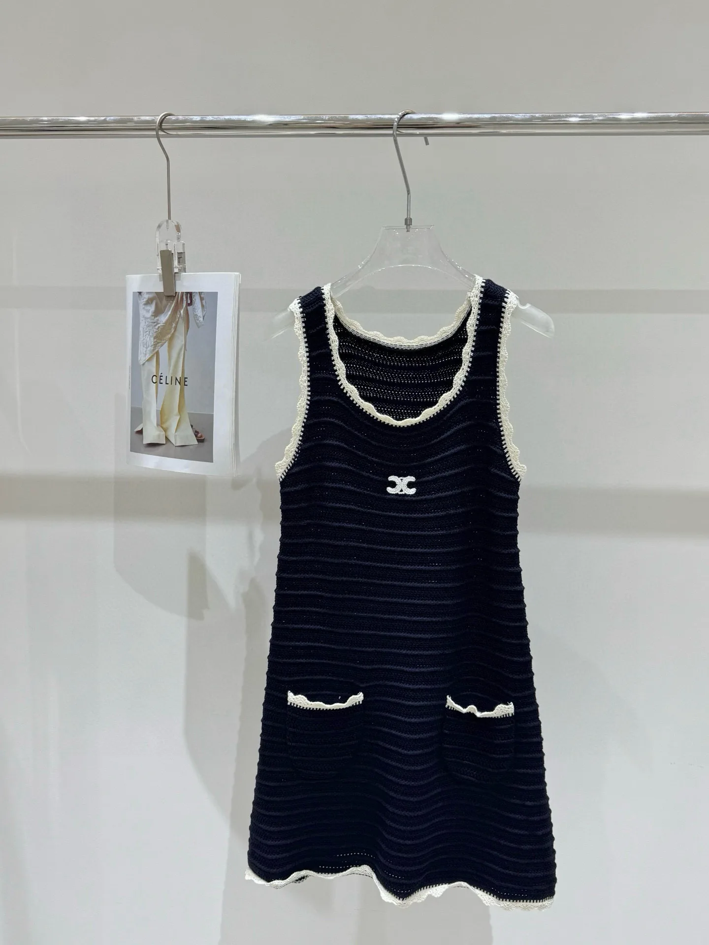 Celine Arc de Triomphe – Strick-Westenkleid mit bestickter Spitze