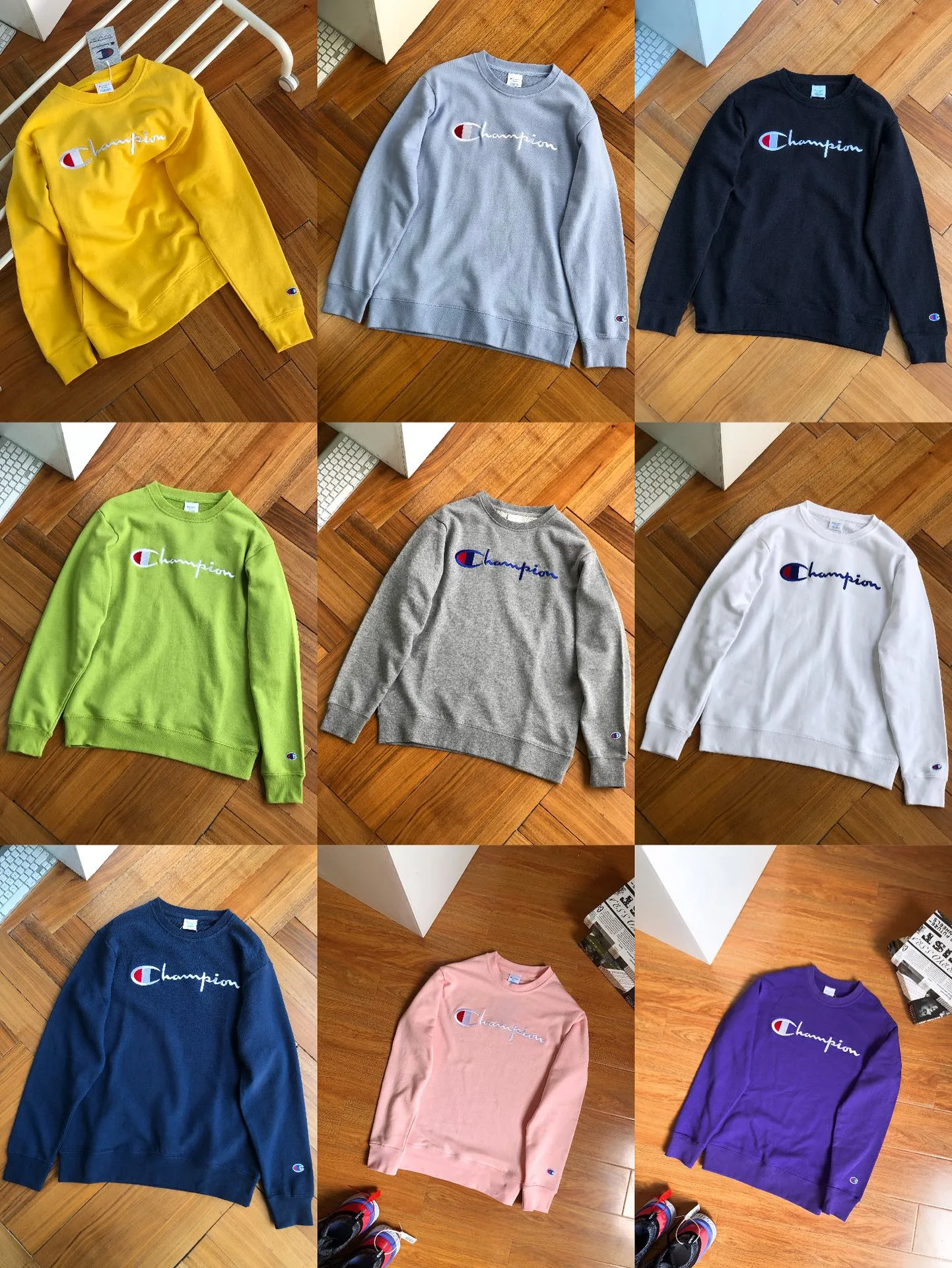 champ#champion’s Sweatshirt mit Rundhalsausschnitt und kursiver Stickerei. Neun Paar-Styles.