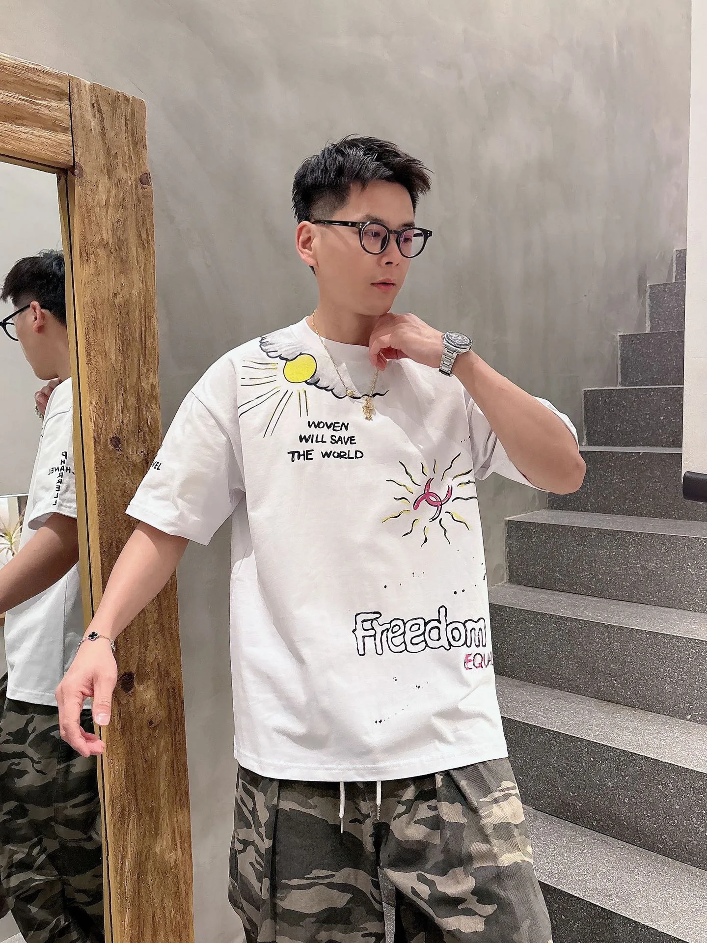 CHAN*L Chanel Sun Water Painting – Kurzarmshirt mit minimalistischem Print