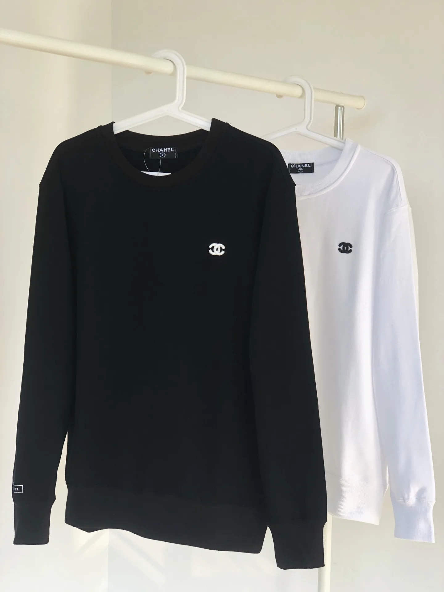 CHANEL Fw Public Relations Serie Sweatshirt mit Doppel-C-Stickerei und Rundhalsausschnitt