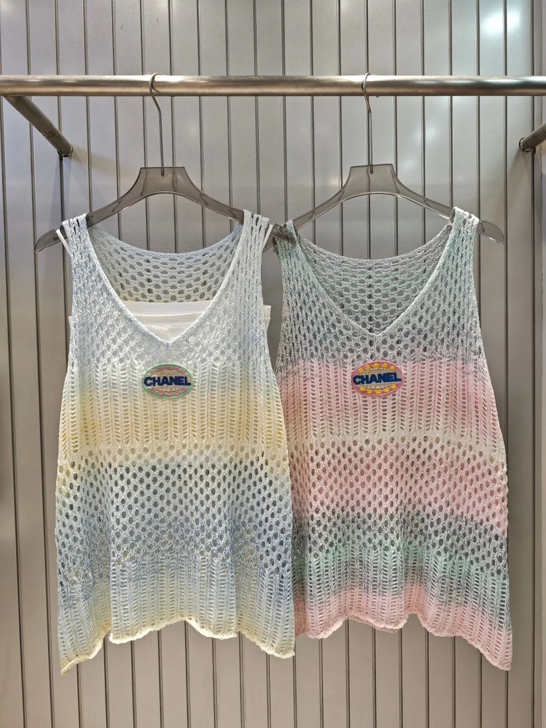 Chanel – Hohlstrickweste mit besticktem Buchstaben-Emblem