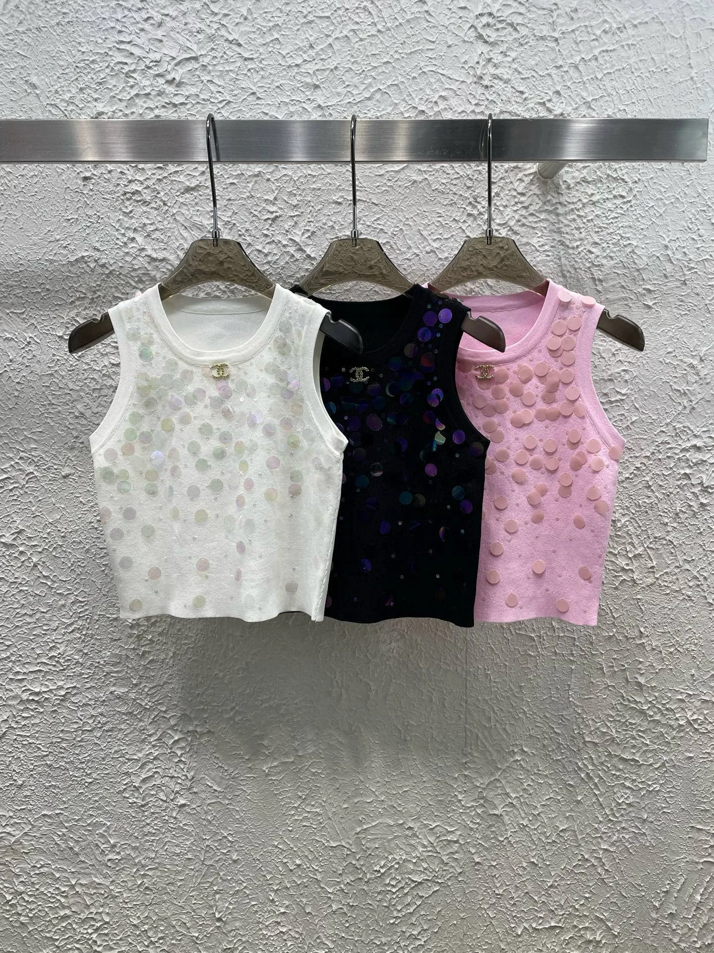 Chanel Handgenähte Strickweste mit Doppel-C-Pailletten