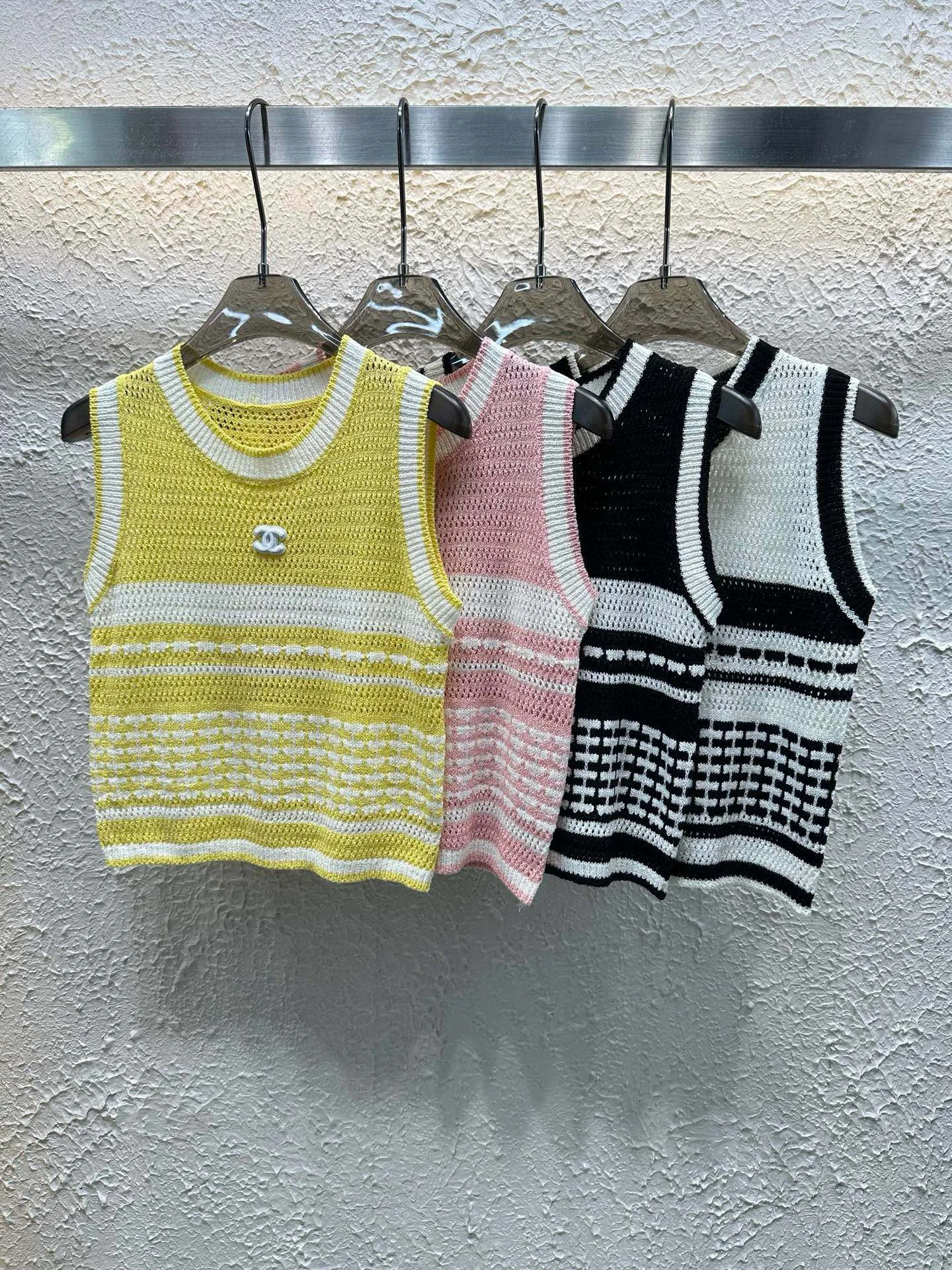 Hochwertige Chanel-Weste im gelben Strick-Streifenstil