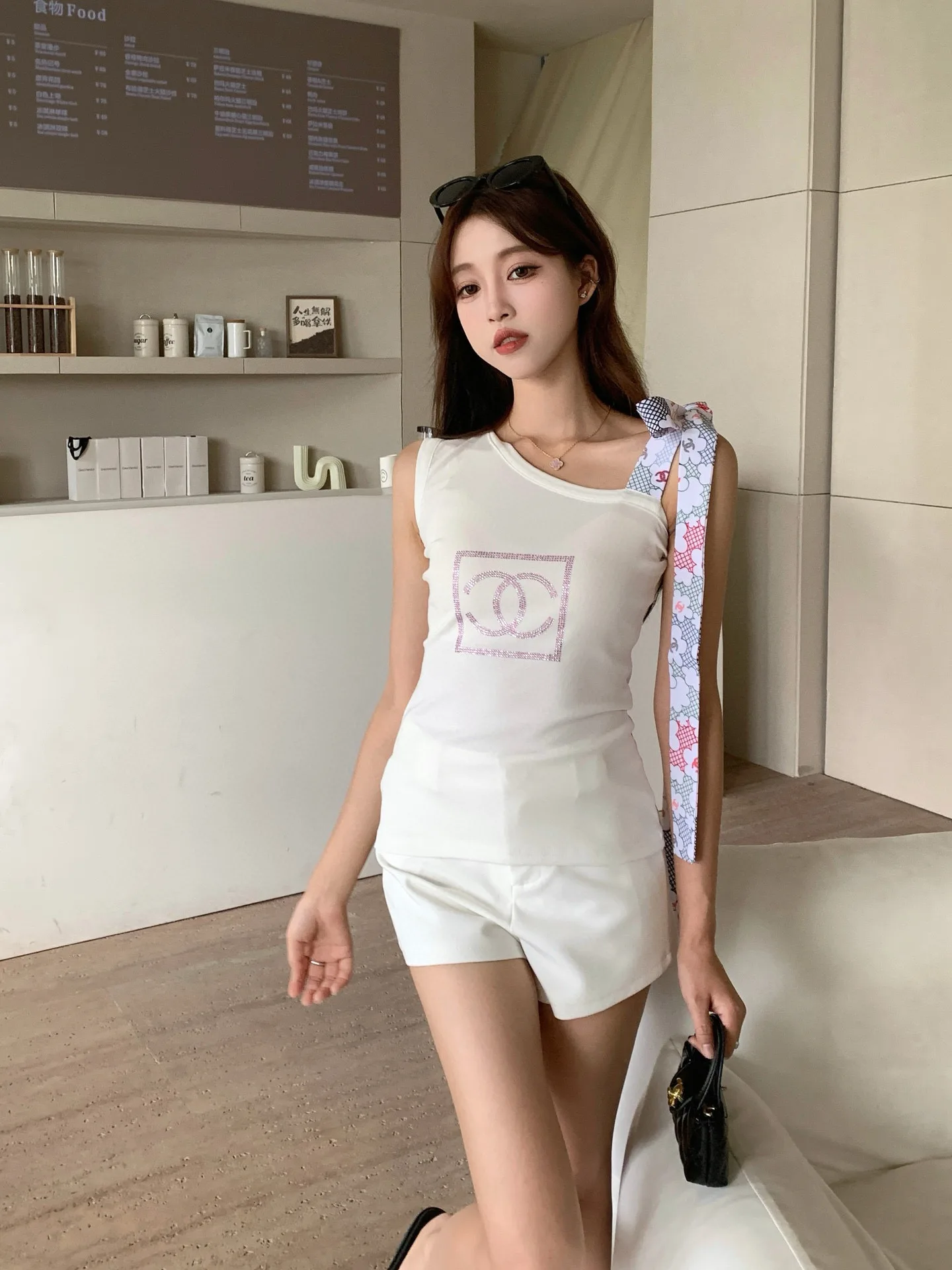 Chanel Tanktop mit quadratischem Doppel-C-Strass und Bindebändern