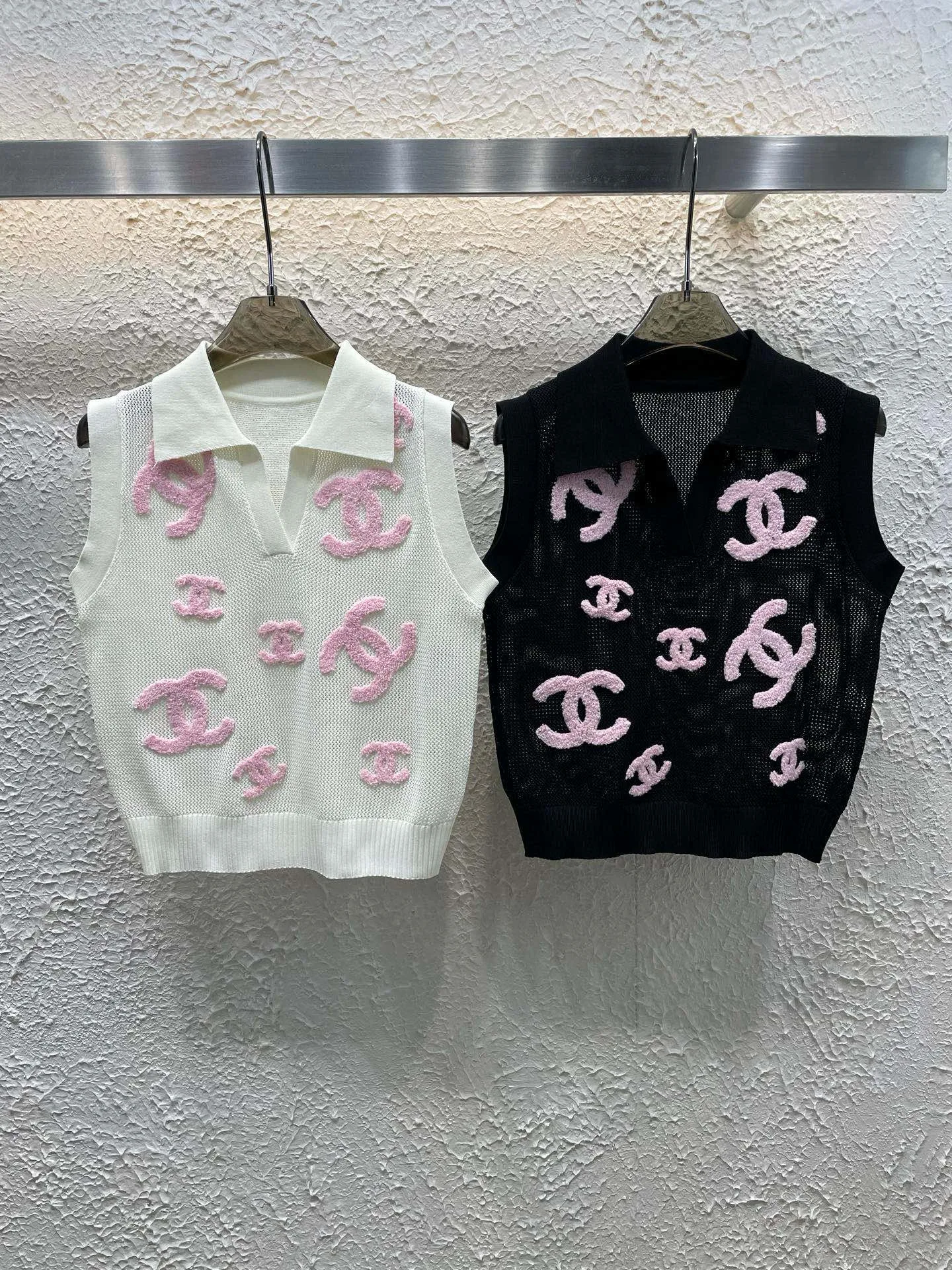 Hochwertige Chanel-Weste im weißen Strick-Stickerei-Stil