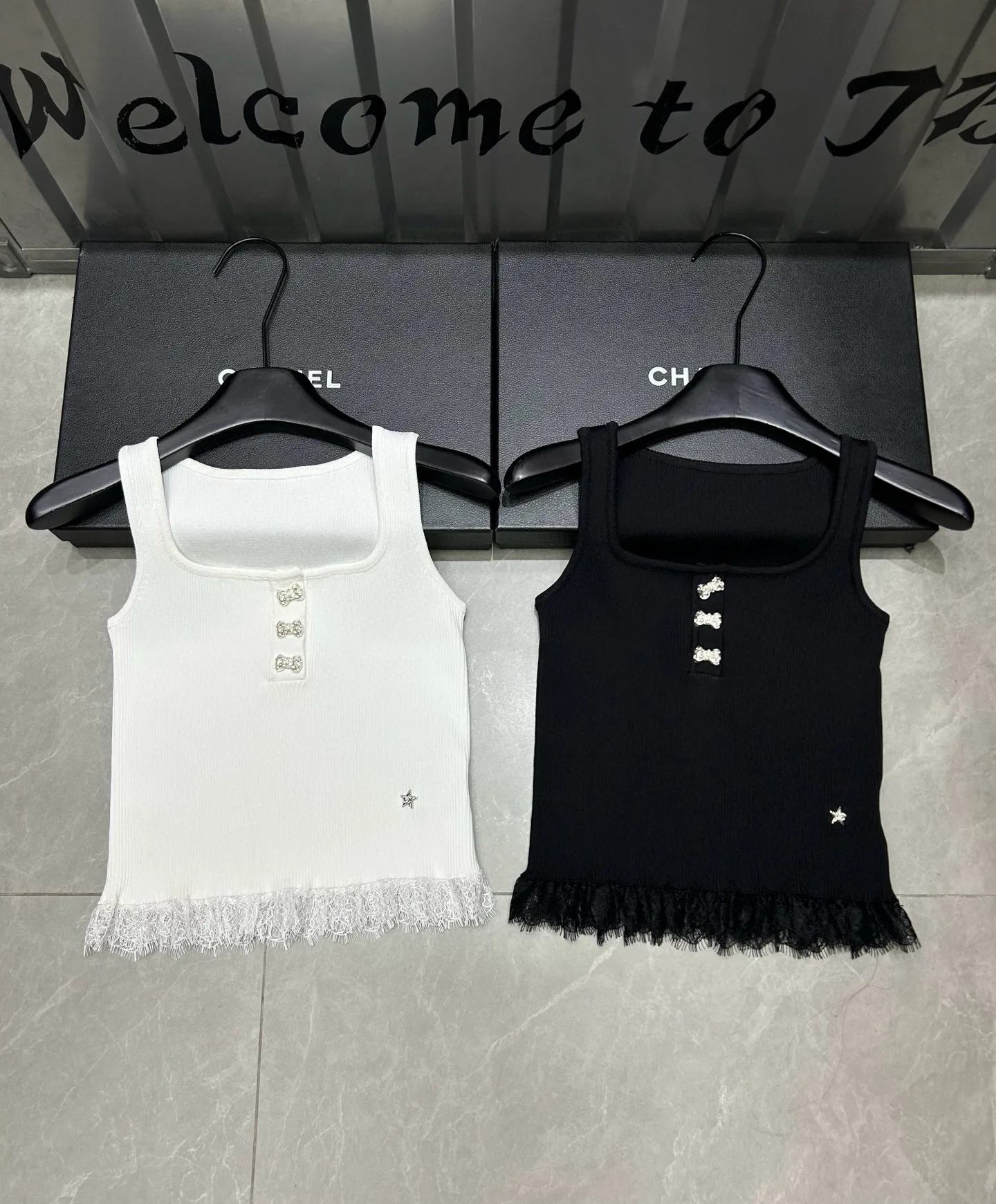 Chanel Custom Strickweste mit Doppel-C-Schleife und fünfzackigem Stern und Spitzeneinsatz