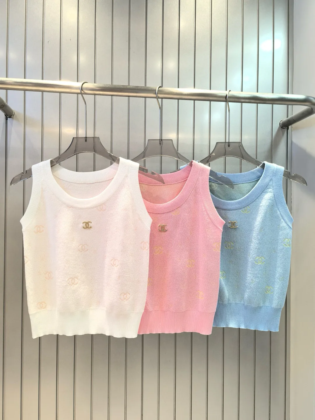 Hochwertige Chanel Weste Weiß Strick Jacquard Kollektion