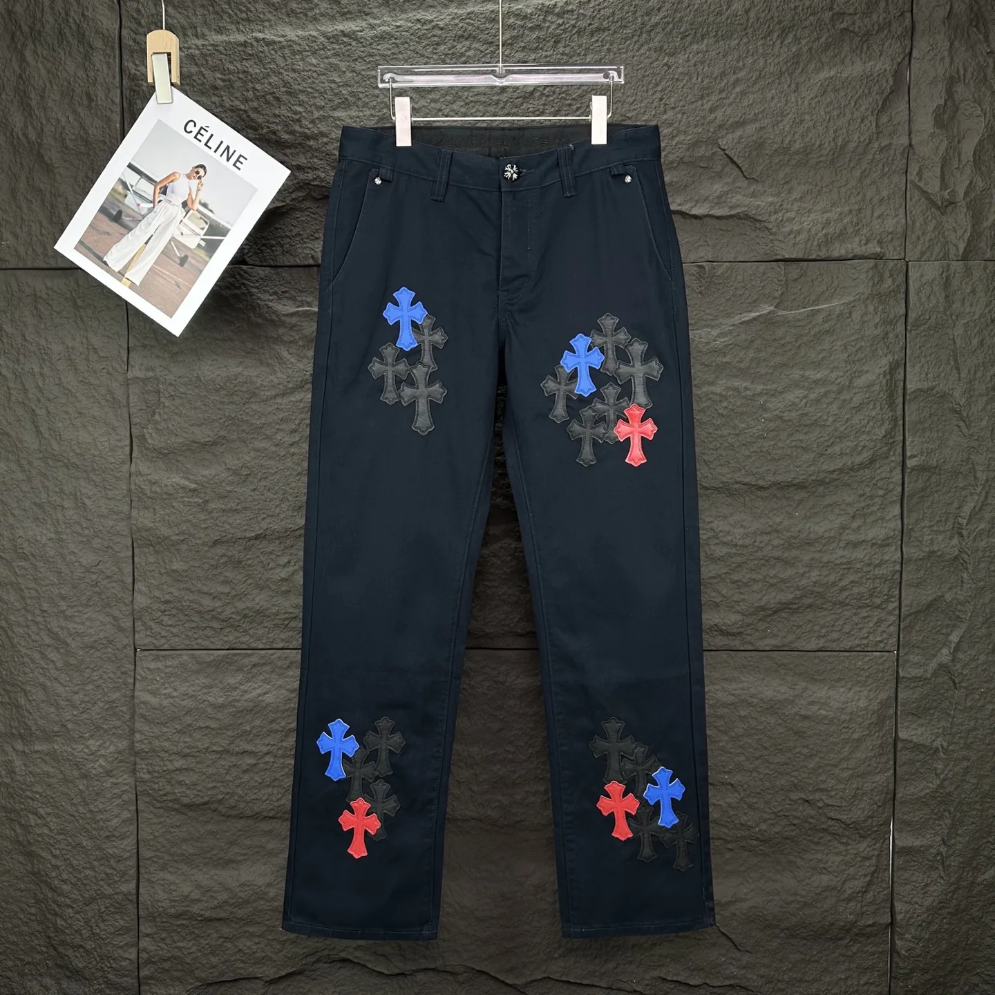 Chrome Hearts‘ neue schwarz-blau-rote Jeans mit gekreuzten Patches für Paare