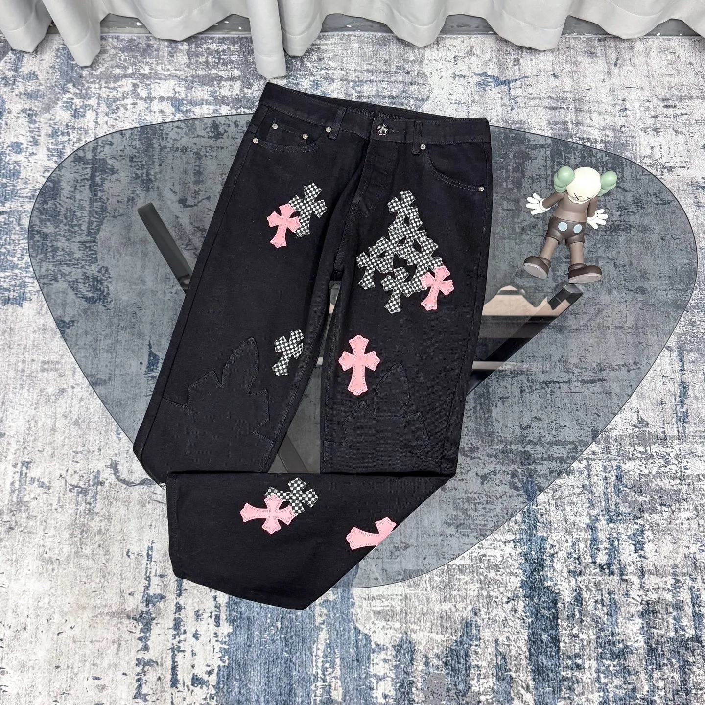 Hochwertige Chrome Hearts Jeans Pink Leder Vintage Kollektion