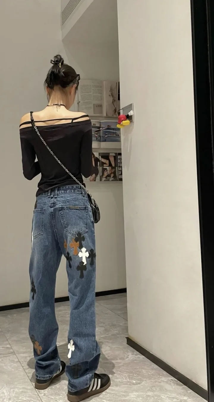 Alle Chrome Hearts Jeans werden gewaschen, anschließend zerlegt und von Hand mit Schafsleder-Kreuzhaut zusammengefügt. Der Prozess ist unerschöpflich. Die Qualität ist da, und die Schönheit ist alles.