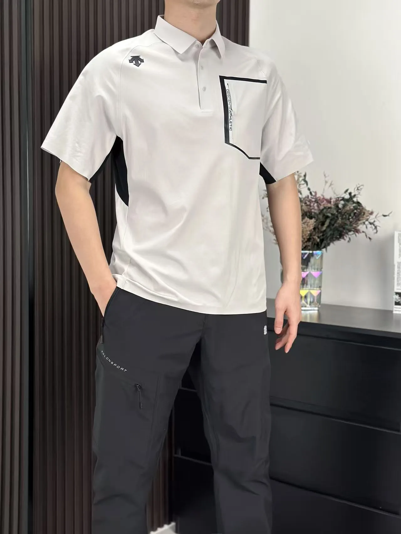 Kurzarm-Pullover mit Stehkragen im Business-Casual-Stil. Neu eingetroffen. Hergestellt aus einem neuen koreanischen Polyester- und Elasthan-Gewebe. Das dreidimensional geformte und weiche Design sorgt für noch mehr Tragekomfort. Der Stoff ist hautfreundlich und hoch atmungsaktiv und hält Sie trocken und schweißfrei.