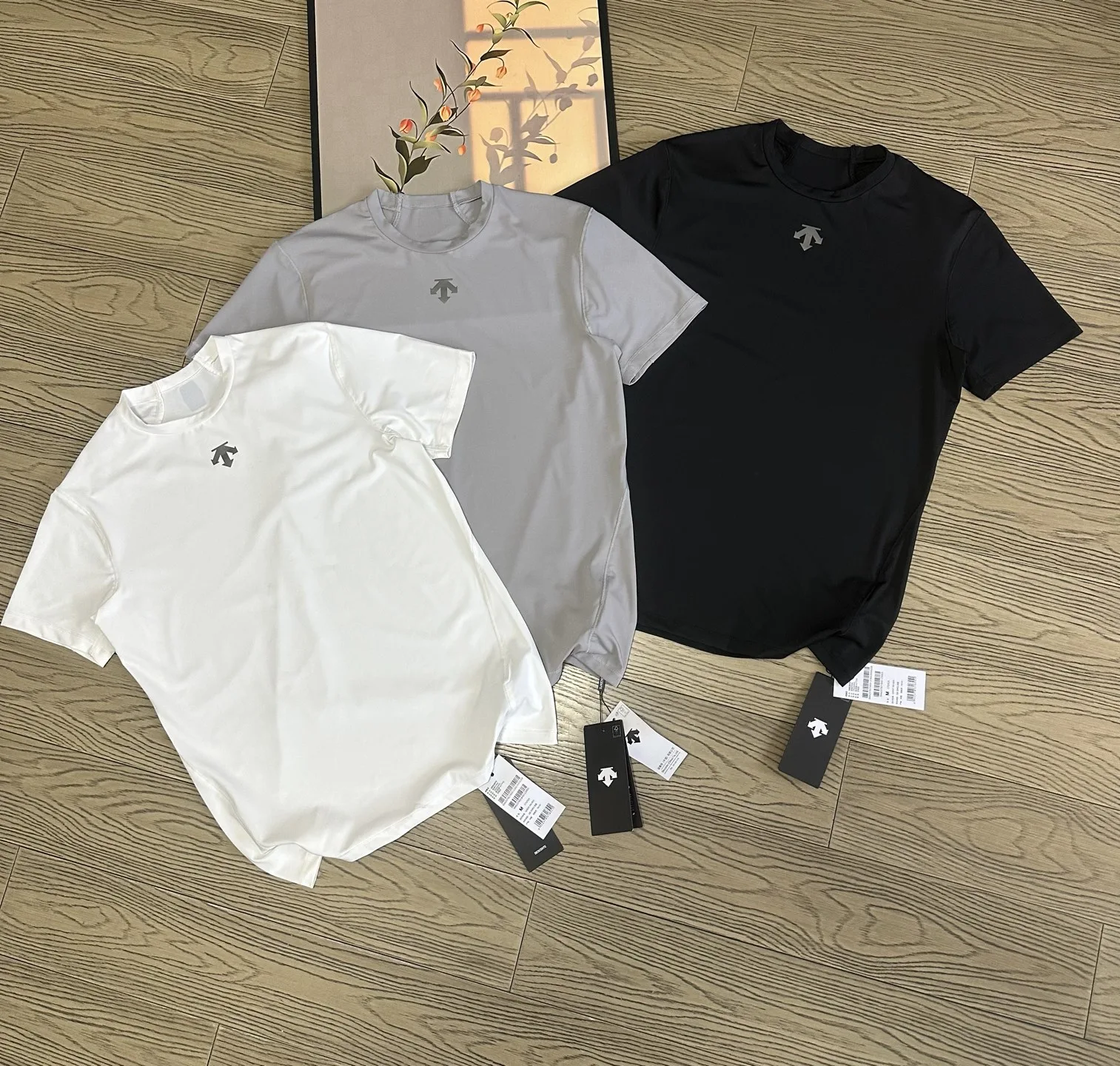 Dreifarbige, erfrischende, schnelltrocknende Kurzarm-T-Shirts für Herren und Frauen für umfassendes Training und Fitness.