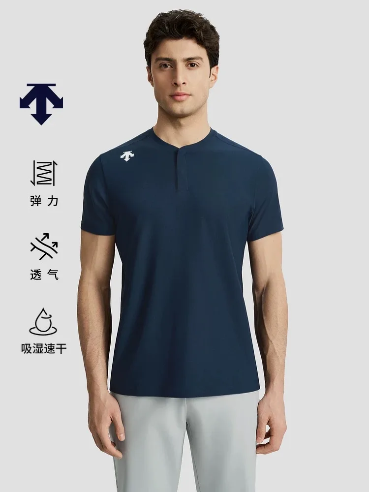 Modell + Details: Das schnelltrocknende Kurzarm-T-Shirt aus Eisseide von Descente für Herren mit verdecktem Knopfdesign ist stylisch, lässig und vielseitig! Das schnelltrocknende Kurzarm-Trainings-T-Shirt mit Henley-Kragen für Herren der DESCENTE TRAINING-Serie. Technologie ermöglicht Training, Stil definiert Stil und High-End-Sportgene werden durch Schweizer Qualität unterstützt. Descente, eine High-End-Sportmarke aus der Schweiz, ist weltweit für ihre innovative Technologie und ihr professionelles Design bekannt. Die TRAINING-Serie wurde für Sportbegeisterte entwickelt und integriert modernste Skibekleidungstechnologie in Ihr tägliches Training, wodurch jedes Stück eine außergewöhnliche Leistung erhält. Innovatives, schnelltrocknendes Gewebe ist schweißbeständig. Feuchtigkeitsableitend und schnelltrocknend: Das leistungsstarke, schnelltrocknende Gewebe lässt Schweiß schnell verdunsten und hält Sie während des gesamten Trainings trocken und komfortabel, wodurch klebriges Unbehagen vermieden wird. Atmungsaktives Mesh-Design: Rücken- und Unterarmbelüftung verbessert die Luftzirkulation und hält Sie auch bei intensivem Training frisch. Das Henley-Kragendesign, eine Mischung aus robust und stylisch, vereint klassischen und modernen Charme: Der vom Rudern inspirierte Henley-Kragen hat ein halboffenes Kragendesign, das Retro- und moderne Elemente vereint und so eine Vielzahl von Styling-Möglichkeiten eröffnet: Tragen Sie ihn allein, um Ihr Schlüsselbein hervorzuheben, oder tragen Sie ihn mit einer Innenschicht für einen Lagenlook. Dreidimensionale Schneiderei: Verstärkte Schulternähte betonen die Konturen von Hals und Schultern und betonen eine modellierte Silhouette. Ein markanter Look für den Sportplatz und die Straße. Aufwendige Details definieren die sportliche Ästhetik. Ergonomische Passform: Passt sich dem asiatischen männlichen Körper an und gewährleistet so reibungslose, uneingeschränkte Bewegungen und deutlich verbesserte Mobilität. Langlebige Verarbeitung: Präzise Nähte und hochelastisches Gewebe sorgen dafür, dass die Stoffe auch nach mehreren Wäschen frisch und neu aussehen. Vielseitig, vom Fitnessstudio bis zur Stadt: Vom morgendlichen Lauf über das Training im Fitnessstudio bis hin zum Wochenendausflug – dieses T-Shirt lässt sich problemlos zwischen aktiven und lässigen Anlässen wechseln. Kombinieren Sie es mit Sportshorts für einen stylischen Look oder mit einer Freizeithose für einen minimalistischen, trendigen Look.