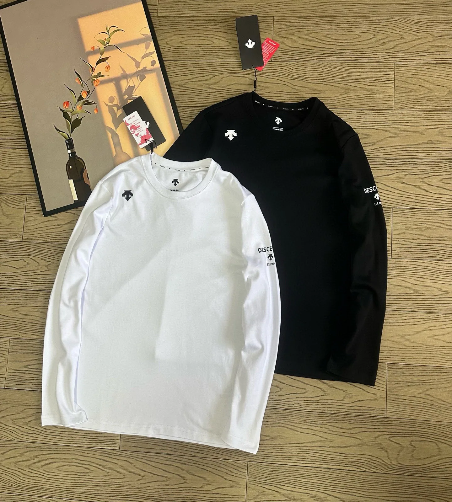 DESCENTE/Desents neues gestricktes Langarm-T-Shirt mit Rundhalsausschnitt für den Herbst, erhältlich unter: Basic-Shirts in Originalqualität.