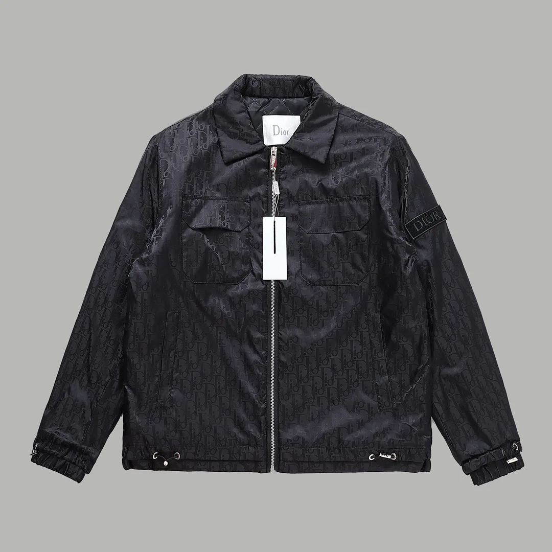 Dior Diorss Allover-Print auf der Brusttasche mit Revers und Steppjacke mit Reißverschluss